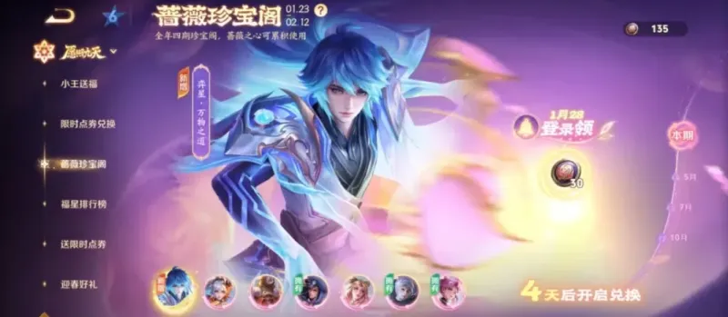 蛇年的钻石夺宝上架了姜子牙的星梦巡礼,珍宝阁则上架了弈星的万物之道,除夕当天登录,还可以直接领取30蔷薇之心。