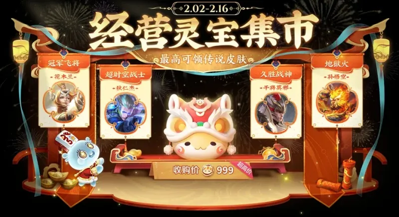蛇年的灵宝市集是在初五才开启的,规则也基本上没多大变化,同样是通过高价售卖小蛇糕来攒取小福币,再去兑换皮肤或者荣耀积分。